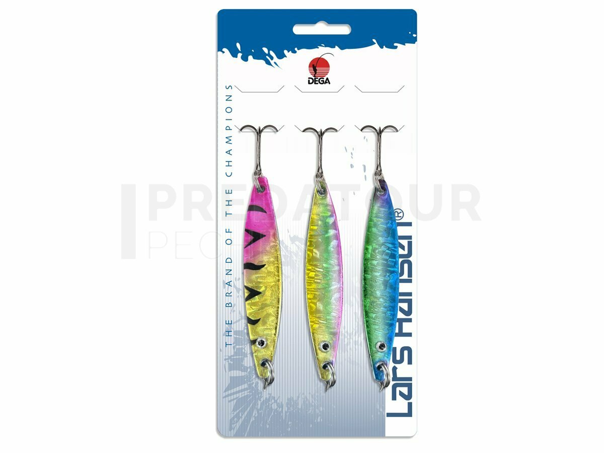 Le Dega Seatrout Spoon Set est un ensemble de cuillers de haute qualité spécialement conçu pour la pêche de la truite de mer. Chaque set comprend trois leurres finement travaillés offrant une nage attractive et des surfaces très réfléchissantes, capables d’attirer les carnassiers de loin.