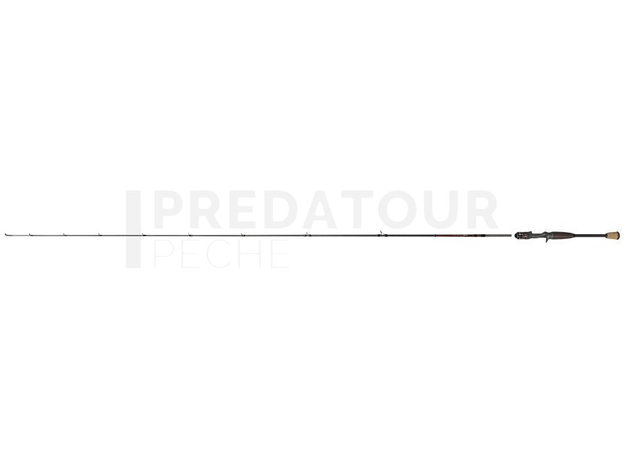 Le design de cannes PRO GUIDE X Cast se distingue par les décorations de couleur rouge et par le vernis semi-transparent mis sur l’élément en graphite au-dessus du talon. Le bout de talon possède des finitions en liège-gomme et la mousse noire.