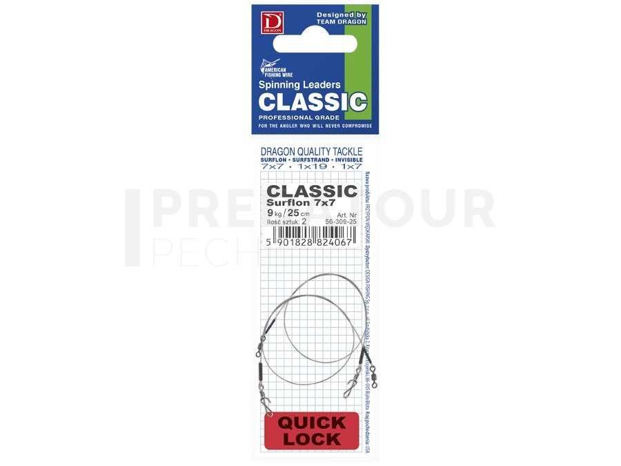 Les mousquetons Dragon Quick Lock ont connu un succès retentissant dès leur lancement. Il en a été de même pour les bas de ligne équipés de ces mousquetons, fabriqués à partir de la série de lignes en acier la plus populaire de l'A.F.W.