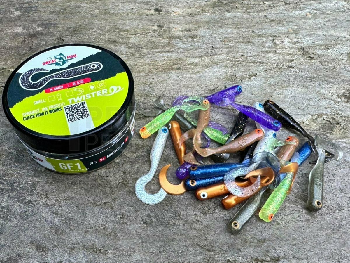 Leurres souples Great Fish GF1 Twister Mix 49mm - no scent - multicolor I