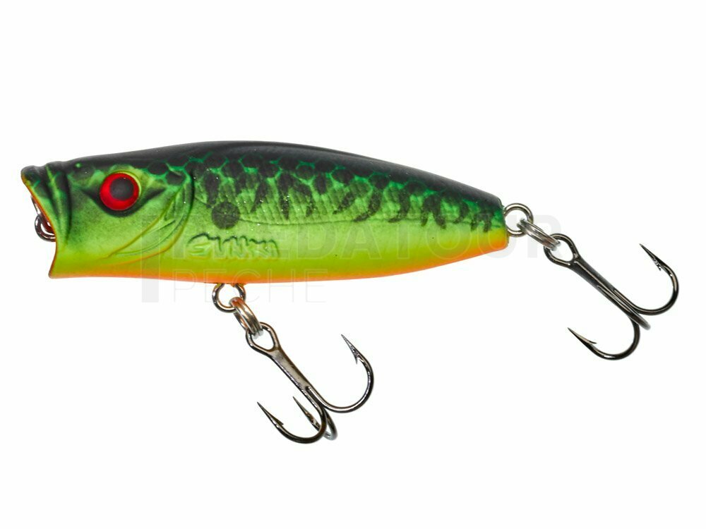 Cette version miniature, stable et compacte, reprend toutes les caractéristiques du HEDORA 55F. Quee ce soit en tirées sèches pour produire un « POP » efficace ou plus ample afin d’obtenir un « walking the dog » tout en glissades, ce leurre de surface attirera les carnassiers de loin. Même les plus éduqués se laisseront séduire par le sillage de micro bulles qu’il génère et sa nage erratique.