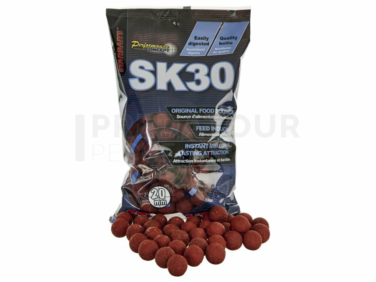 Formulée à partir de matières premières carnées de haute qualité reconnues pour leurs principes attractifs tels que: farines de poissons séchées à base température, extraits solubles de protéines de poissons, extraits marins, et associés à des composés attractifs solubles provenant du calamar ainsi que du krill, la « SK 30 » possède un profil en acides aminés ainsi qu’en acides gras permettant de la classer comme étant un appât indispensable dans la sélection de gros poissons sur un poste.Renforcée en huiles naturelles reconnues comme stimulantes des sens olfacto-gustatifs ainsi qu’en composants favorisant la prise alimentaire, cet appât à haute digestibilité favorisera l’accoutumance, voire la dépendance, des poissons lors d’amorçages à long terme sans aucun phénomène de saturation!